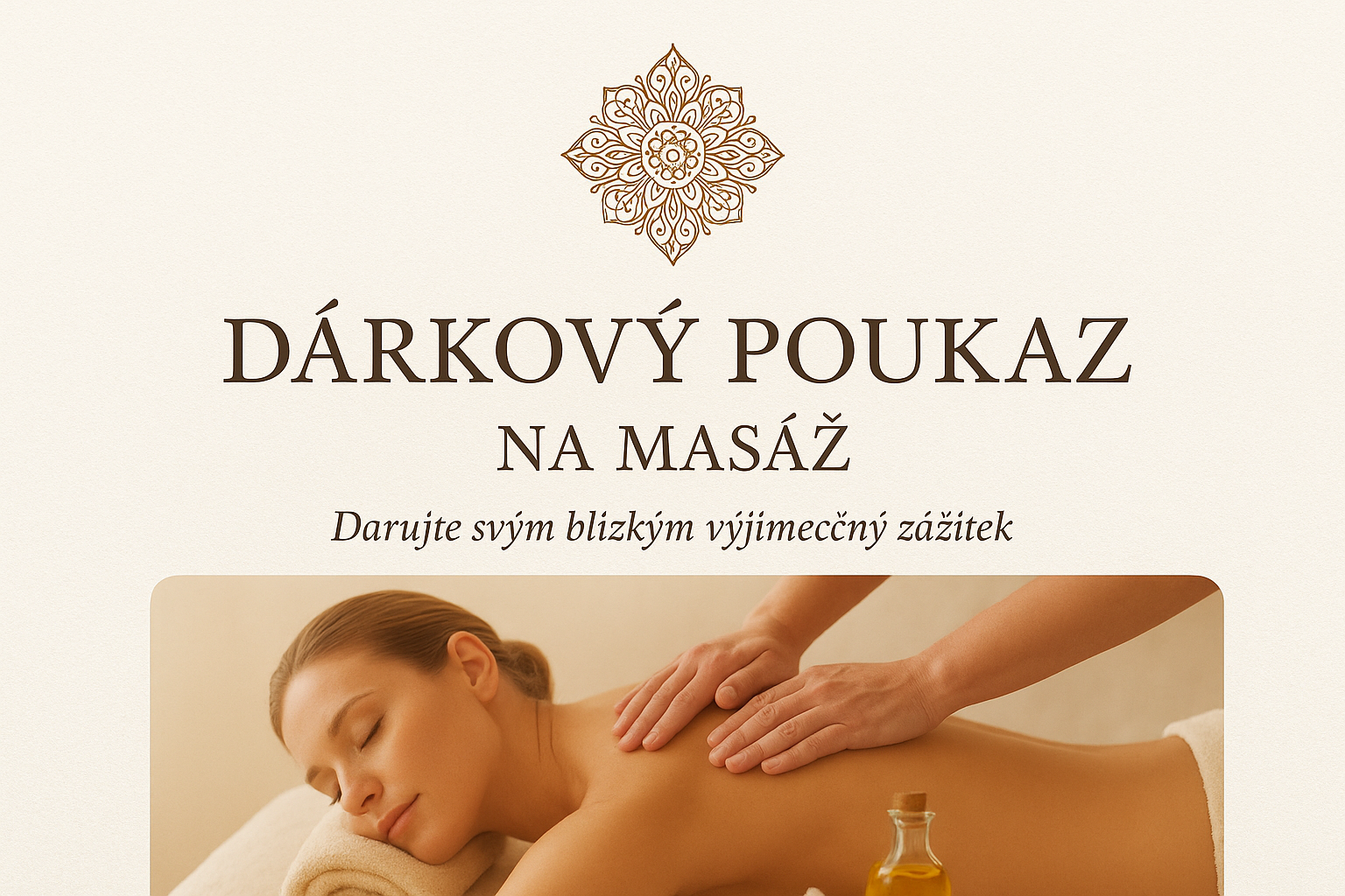 Hledáte dokonalý dárek, který potěší tělo i duši? Chcete svým blízkým dopřát chvíli klidu, odpočinku a skutečné péče? Náš dárkový poukaz na masáž je tou správnou volbou. Darujte zážitek, který zanechá pocit hluboké relaxace a nové energie.